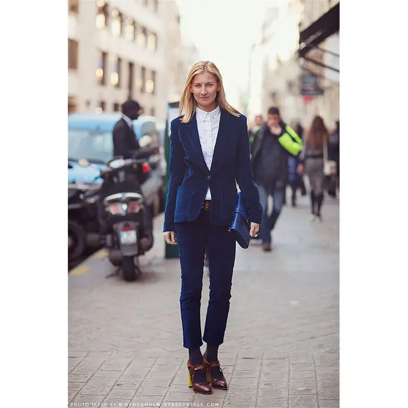 Navy Women Suits Velvet Formal Pants Suits For Wedding Female