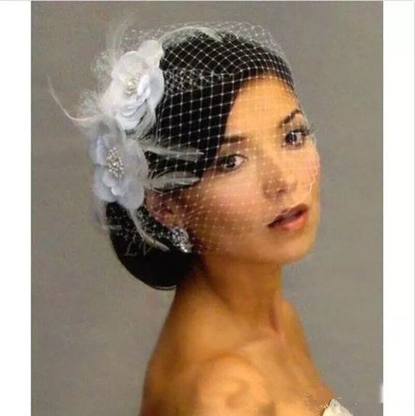 Vintage Birdcage Veils For Bride Beaded White Flower Bridal Veil