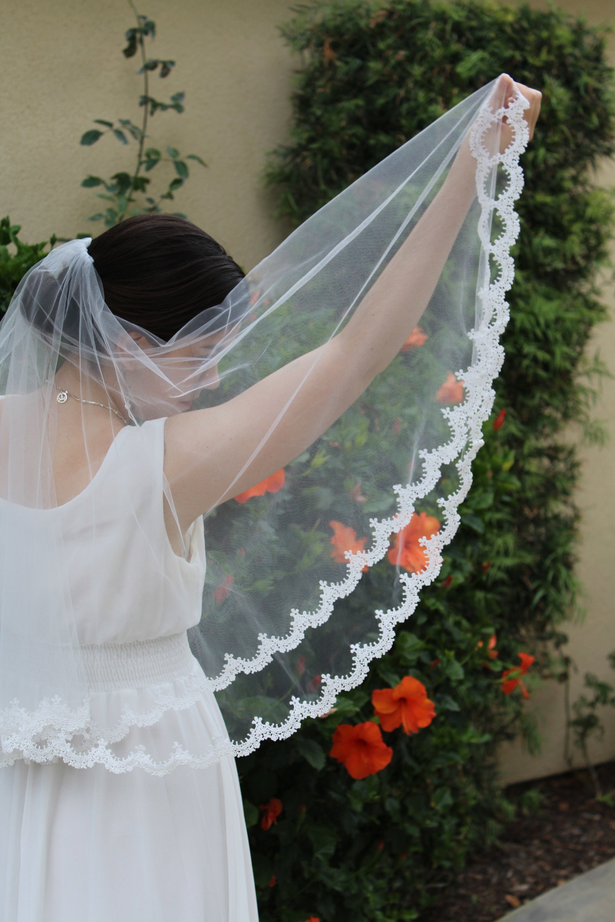 Lace Fingertip Wedding Veil White Off White Ivory Bridal Veil