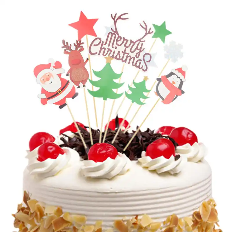 Cake Topper Flags Christmas Penguin Elk Santa Claus Kids Happy