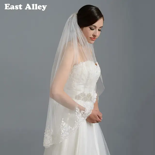 Online Shop Ivory White Bridal Wedding Veil Fingertip Alencon Lace