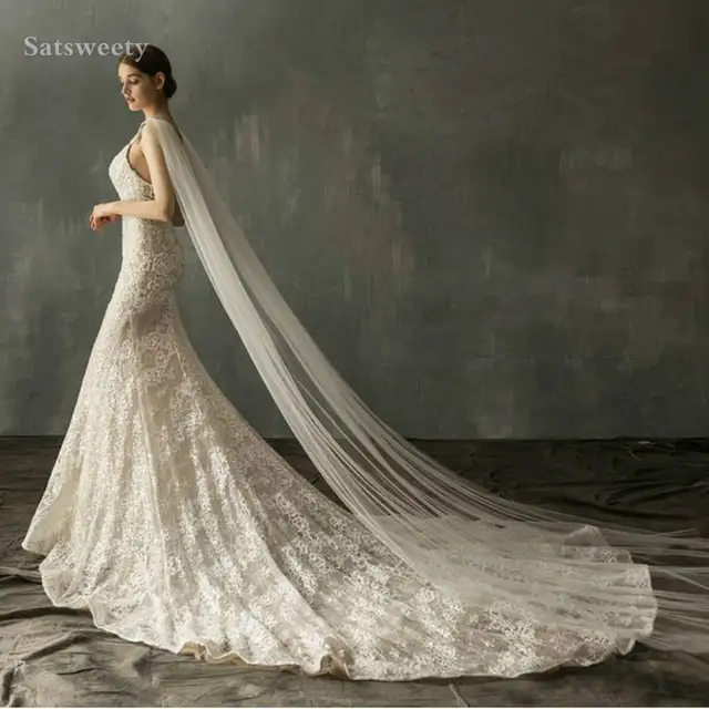 2 8mx1 5m Long White Bridal Veils Soft Tulle With Lace Edge Long