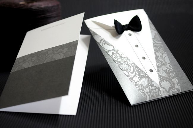 Wedding Invitation Tuxedo1 Black Linen White Smooth