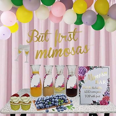 Mimosa Bar Sign Banner Kit Gold Floral Decorations With Juice Tags