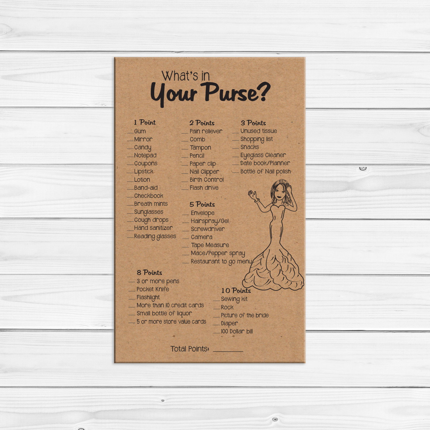 Purse Bridal Shower Game Whats In Your Purse Kraft Paper